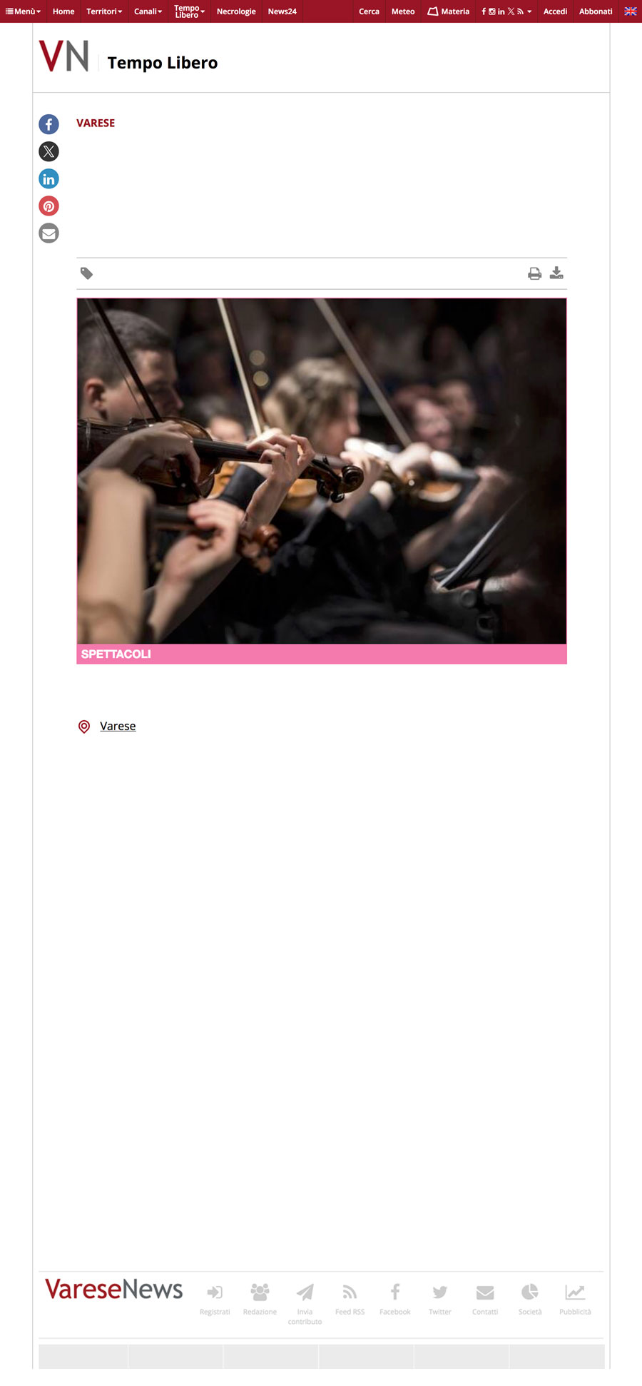 The event is sponsored by the Municipality of Varese. Tickets are priced at 10 euros (single seat), with a reduced rate of 6 euros
