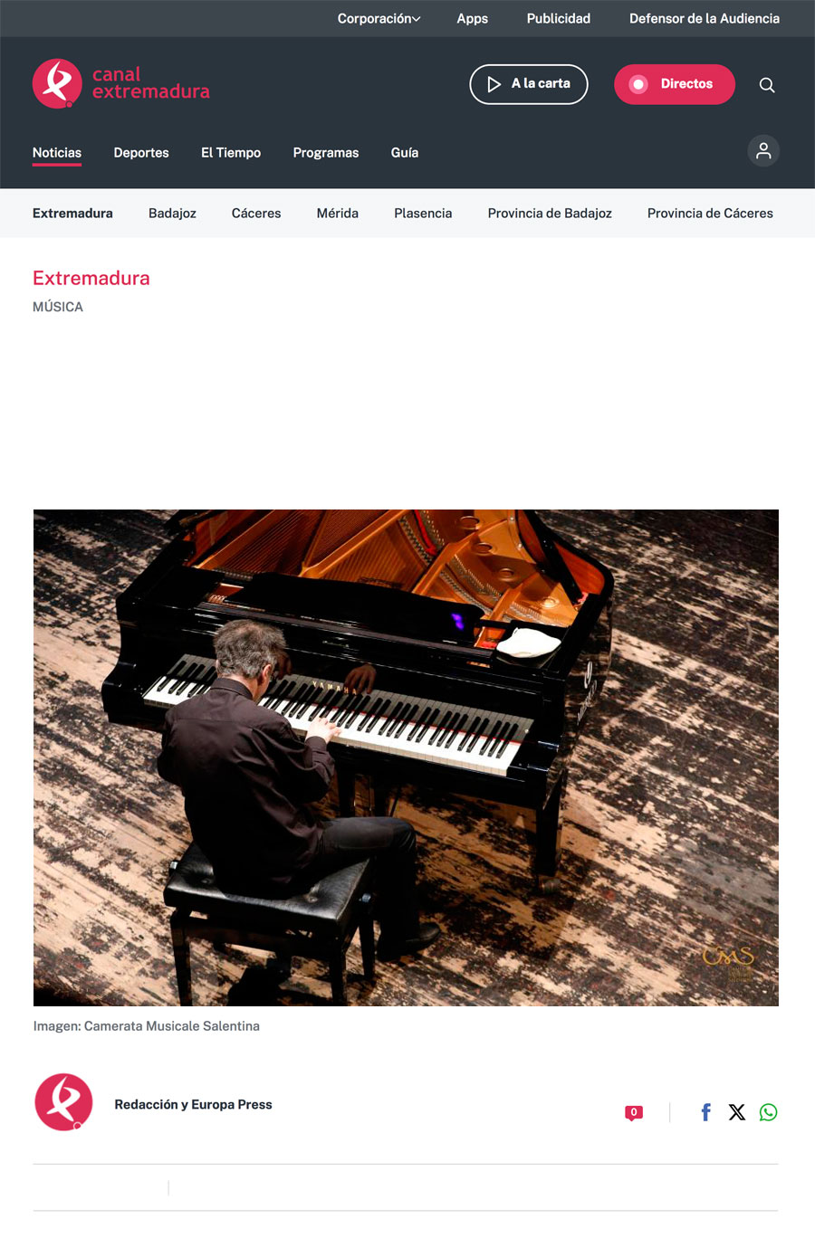 En esta edición participarán también el pianista portugués Filipe Pinto-Ribeiro el 27 de febrero en Badajoz, y los jóvenes
